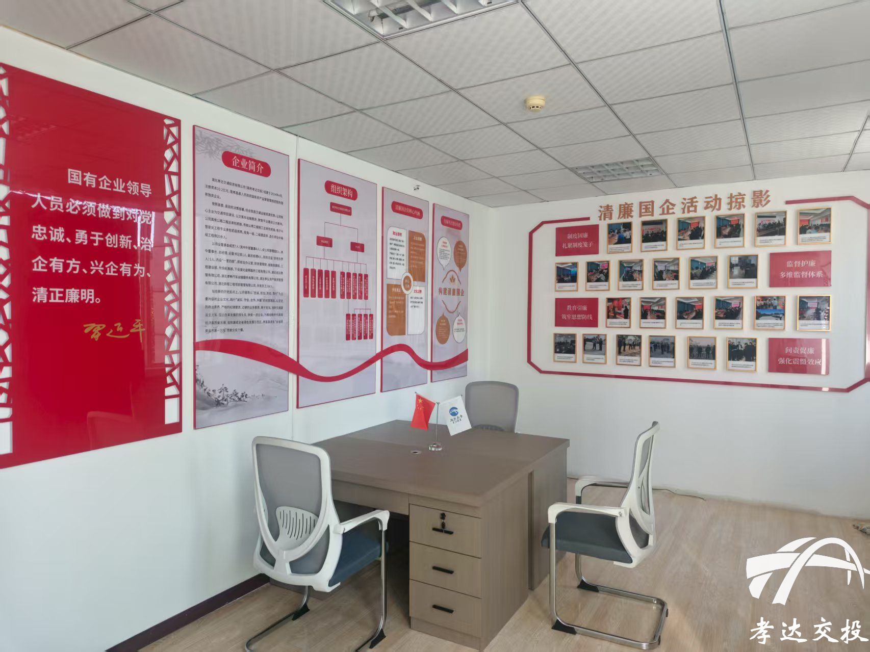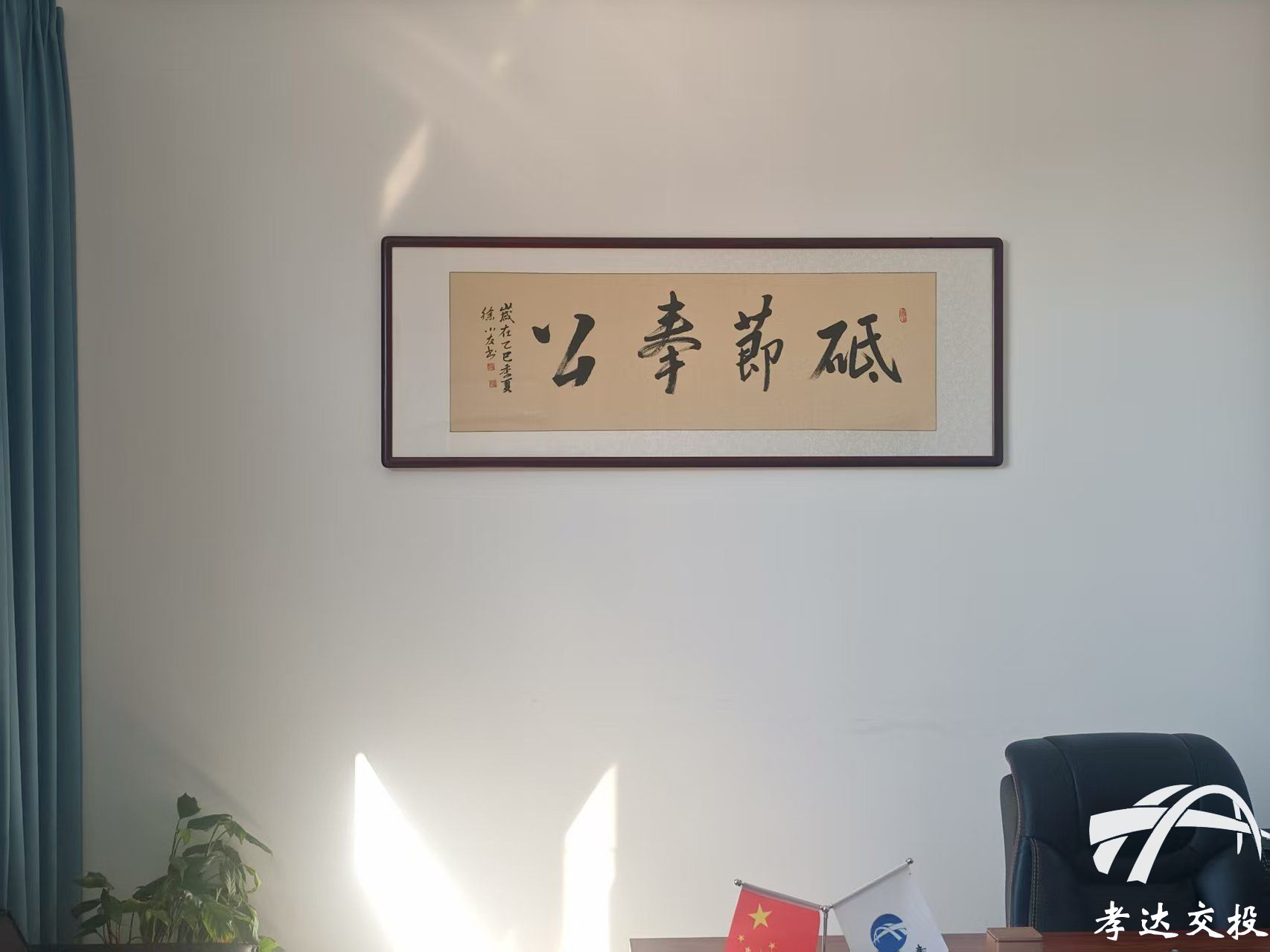“誠信立業(yè)、擔當為民”“腳踏實地,躬身力行”……走進孝達交投辦公樓,清廉之風撲面而來,一幅幅圖文并茂的黨紀法規(guī)、廉潔警句、廉潔文化書法的標語映入眼簾。